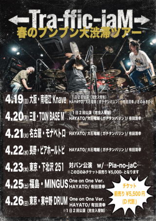 4月25日(土) 「Tra-ffic-jaM」 18:00開場19:00開演 HAYATO(ピアノ)有田清幸(ドラム) 前売り・予約5,500円(ドリンク別) |